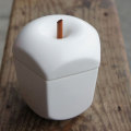 かわいらしいリンゴの形をした磁器のシュガーポットです。本体はツヤ消しの白色で、 芯の部分が木のスプーンになっています。